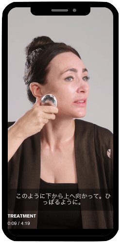 動画の動きを真似するだけでプロ級のフェイシャルケアが再現できる、さらに目的に応じて最適なトリートメントを選択することができる。